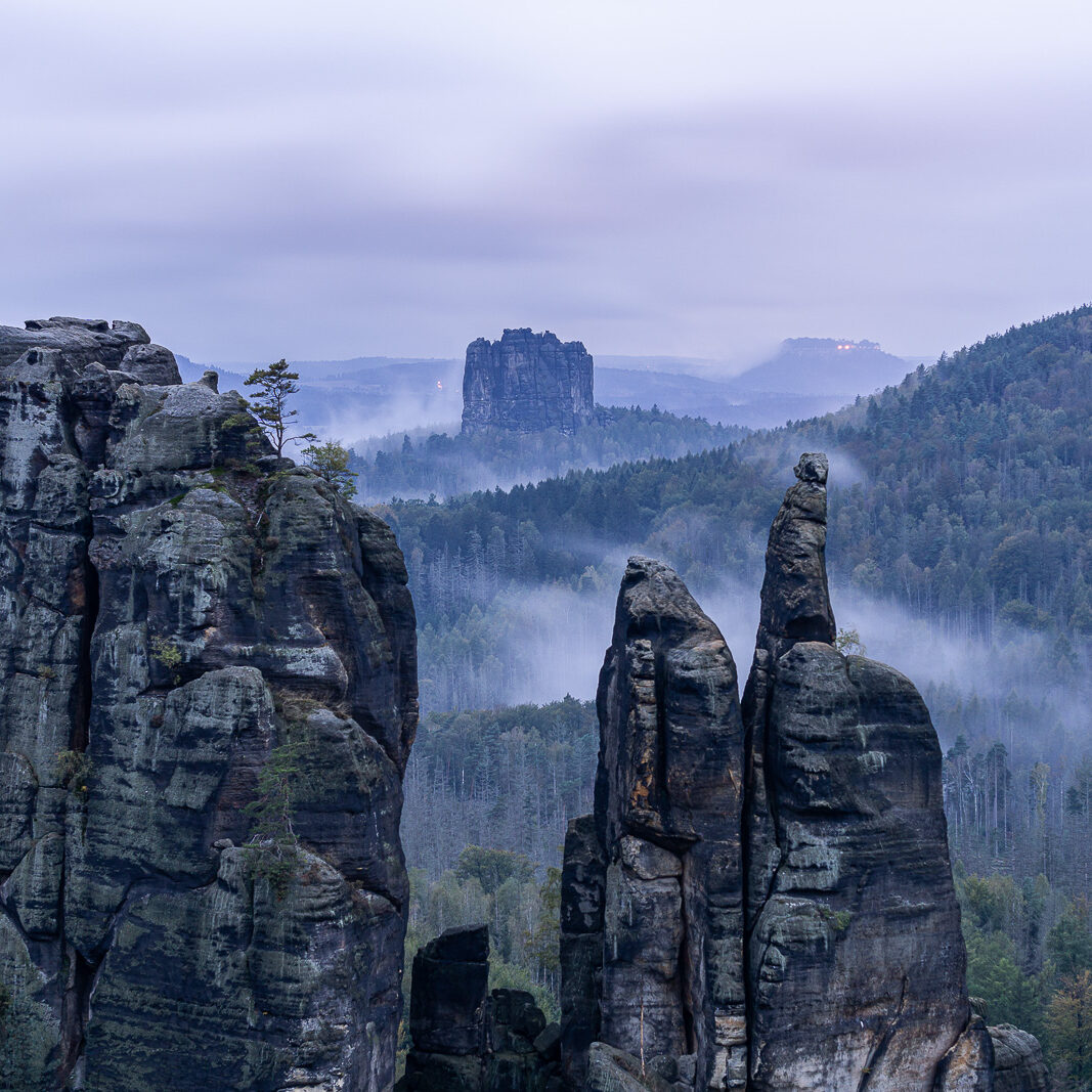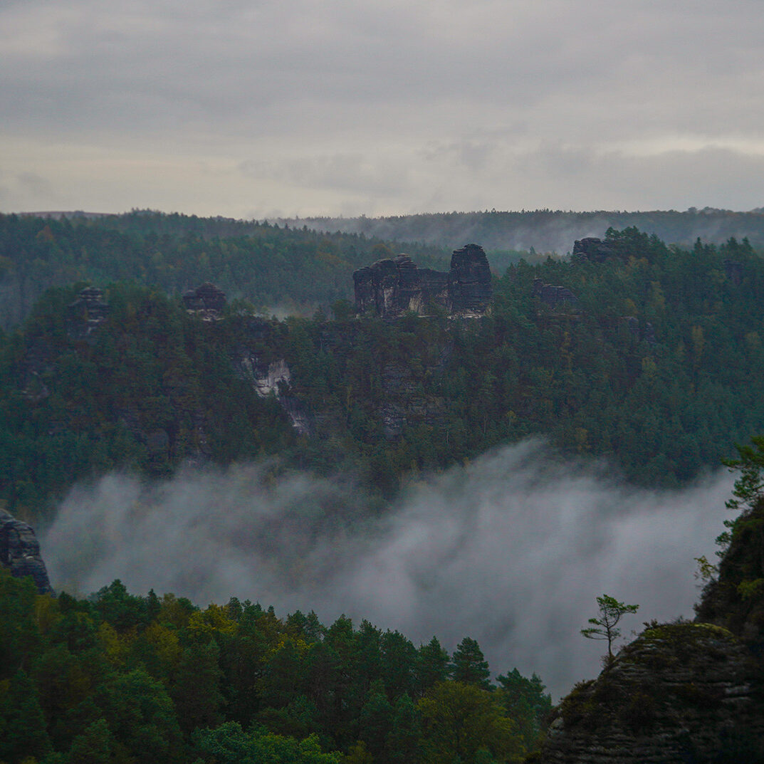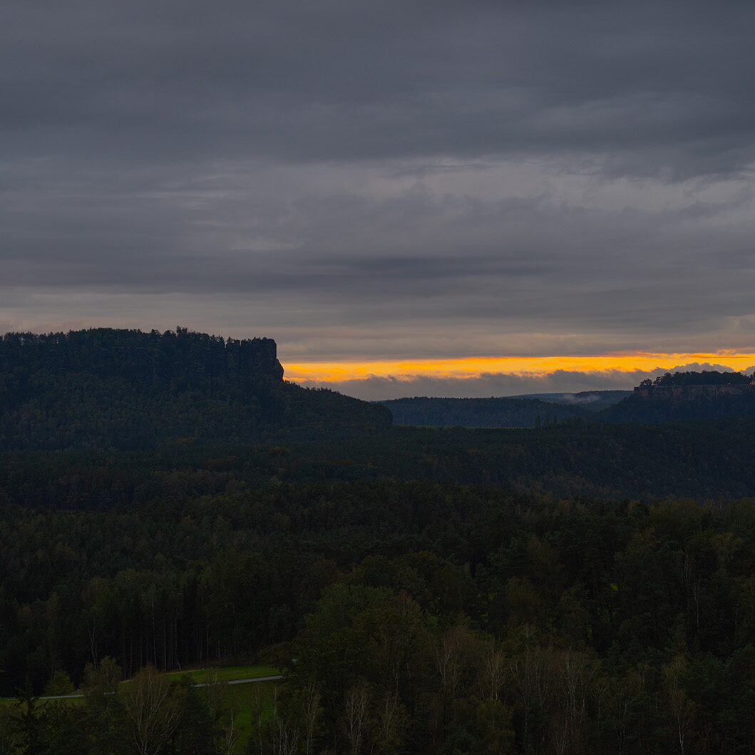 Von Donnerstag, den 03. Oktober, bis Sonntag, den 06. Oktober 2024, führte uns unsere Fotoreise in die malerische Sächsische Schweiz. Nach einer entspannten Anreise in Fahrgemeinschaften bezogen wir zunächst unsere Zimmer im Landhotel zum Erbgericht in Heeselicht. Von dort aus fuhren wir zu unserem ersten Fotospot, dem Gamrig, um bei bedecktem Himmel den Sonnenuntergang zu fotografieren. Obwohl die Wolken unsere Pläne etwas beeinträchtigten, schafften wir es, einige stimmungsvolle Aufnahmen festzuhalten, die die besondere Atmosphäre dieses Ortes widerspiegelten.