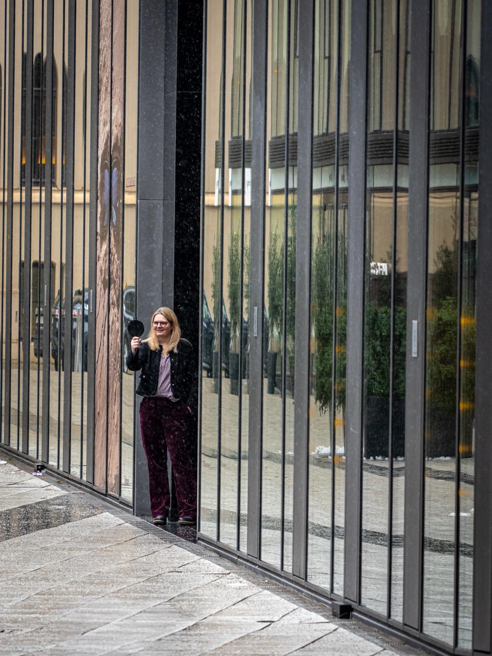 Im Anschluss ging es weiter zur Ausstellung „Helmut Newton – Polaroids“ im Kunstfoyer der Kulturstiftung der Versicherungskammer. Dort sind noch bis zum 22. Februar die ikonischen Sofortbilder des deutschstämmigen Fotografen Helmut Newton zu sehen, die einen ganz besonderen Blick auf sein Werk ermöglichen.