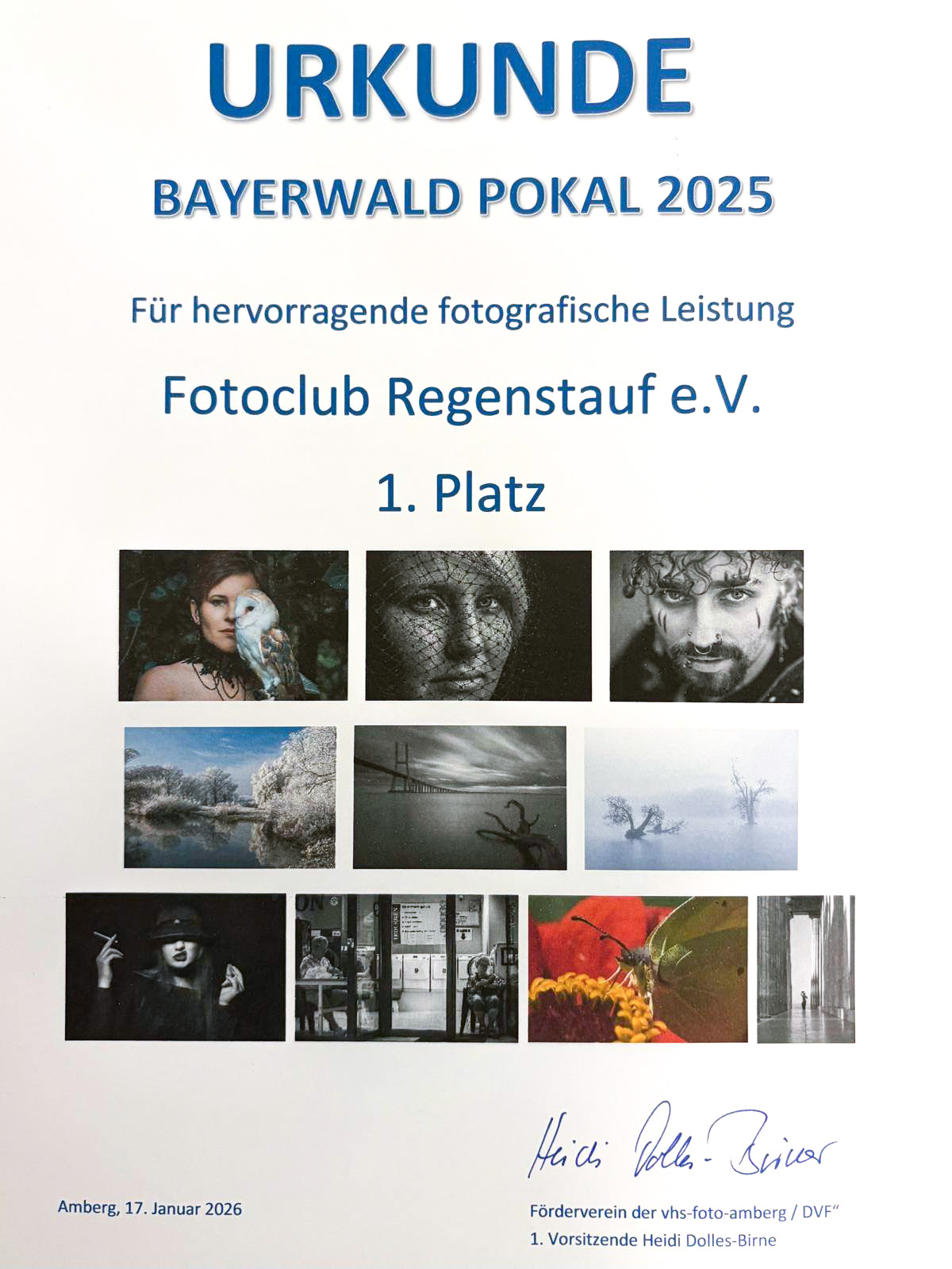 Der Bayerwaldpokal ist eine traditionsreiche Vereinsmeisterschaft, die seit dem Jahr 2001 vergeben wird. Die Jury der Ausgabe 2025 stellte die Fotogruppe der VHS Dillingen. Die Preisverleihung wurde von der VHS-Foto Amberg unter der Leitung von Heidi Dolles-Birner und Georg Birner organisiert und überzeugte durch eine professionelle Durchführung sowie eine spannende Inszenierung.