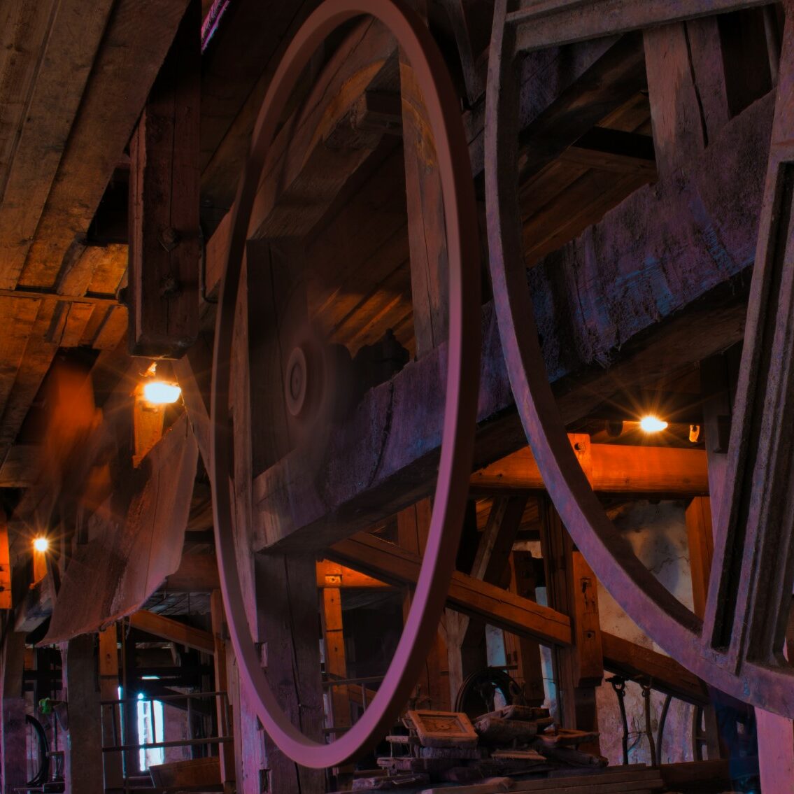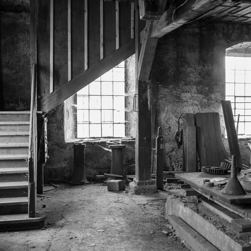 Hier wurden damals Spiegel- und Fensterglasscheiben bearbeitet. Von gewaltigen Wasserrädern angetrieben, liefen auf zwei Stockwerken hölzerne Poliertische rund um die Uhr.